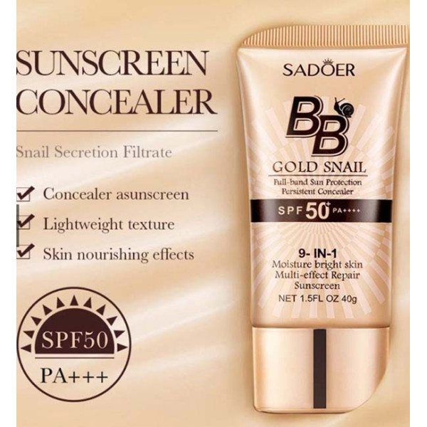 Улиточный СС крем с формулой «все в одном флаконе», являющийся одновременно и тональным, и солнцезащитным, и питательным, и увлажняющим, и антивозрастным кремом от сертифицированного. Gold Snail Sunscreen BB Cream Whitening Foundation SPF50 + Mild Concealer น้ำหนักเบาให้ความชุ่มชื้นติดทนนาน Anti-Aging Oil-Control