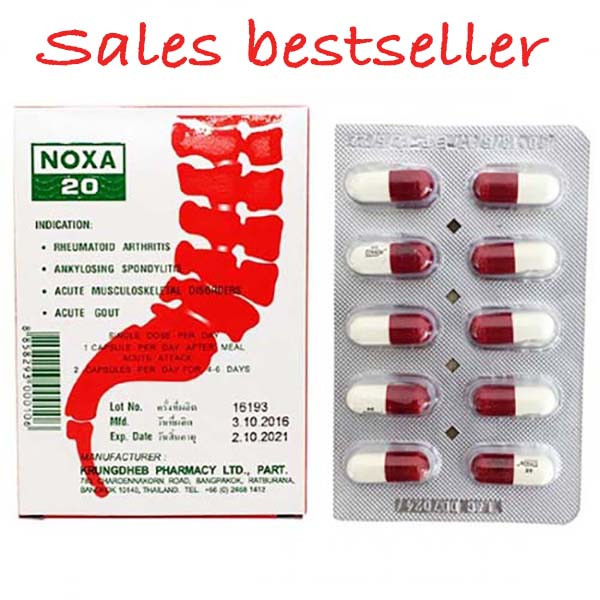 (Noxa 20.) > капсулы относятся к разряду нестероидных противовоспалительных средств. Капсулы для суставов и позвоночника «Noxa 20» обезболивают, снимают воспаление, уменьшает утреннюю скованность. Нокса 20 оказывает жаропонижающее, анальгезирующее и противовоспалительное действие.